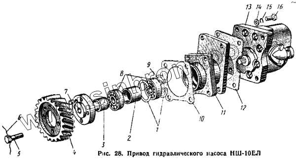 Каталог запасных частей к технике: АТЗ Т-4А. Привод гидравлического насоса НШ-10ЕЛ