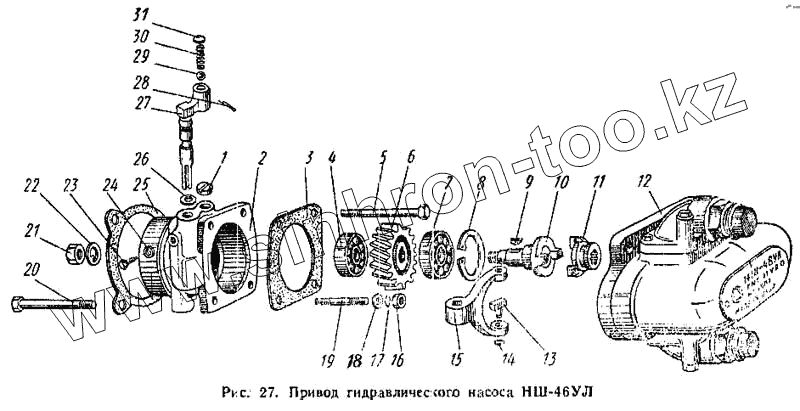 Каталог запасных частей к технике: АТЗ Т-4А. Привод гидравлического насоса НШ-46УЛ