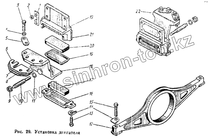 Каталог запасных частей к технике: АТЗ Т-4А. Установка двигателя