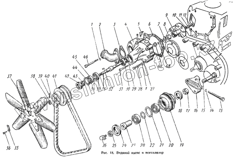 Каталог запасных частей к технике: АТЗ Т-4А. Водяной насос и вентилятор