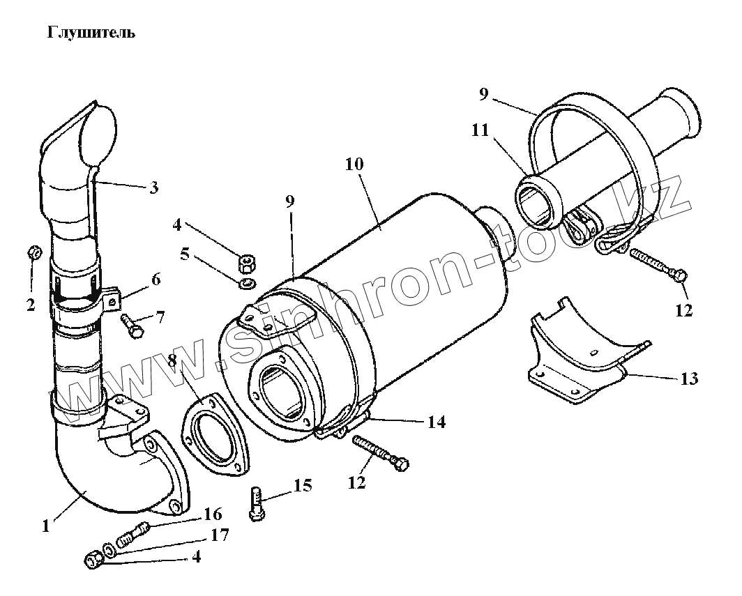 Каталог запасных частей к технике: АТЗ Т-4А, Т-4.02. Глушитель