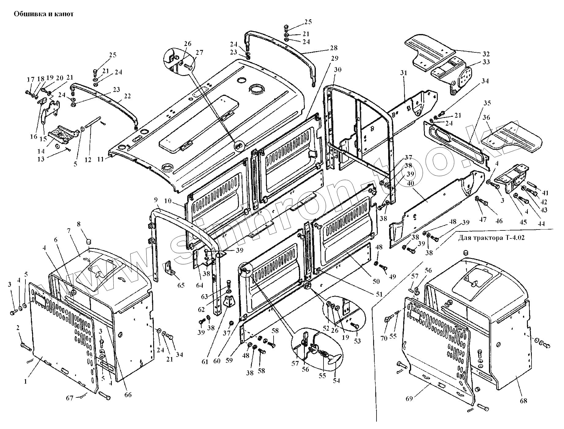 Каталог запасных частей к технике: АТЗ Т-4А, Т-4.02. Обшивка и капот