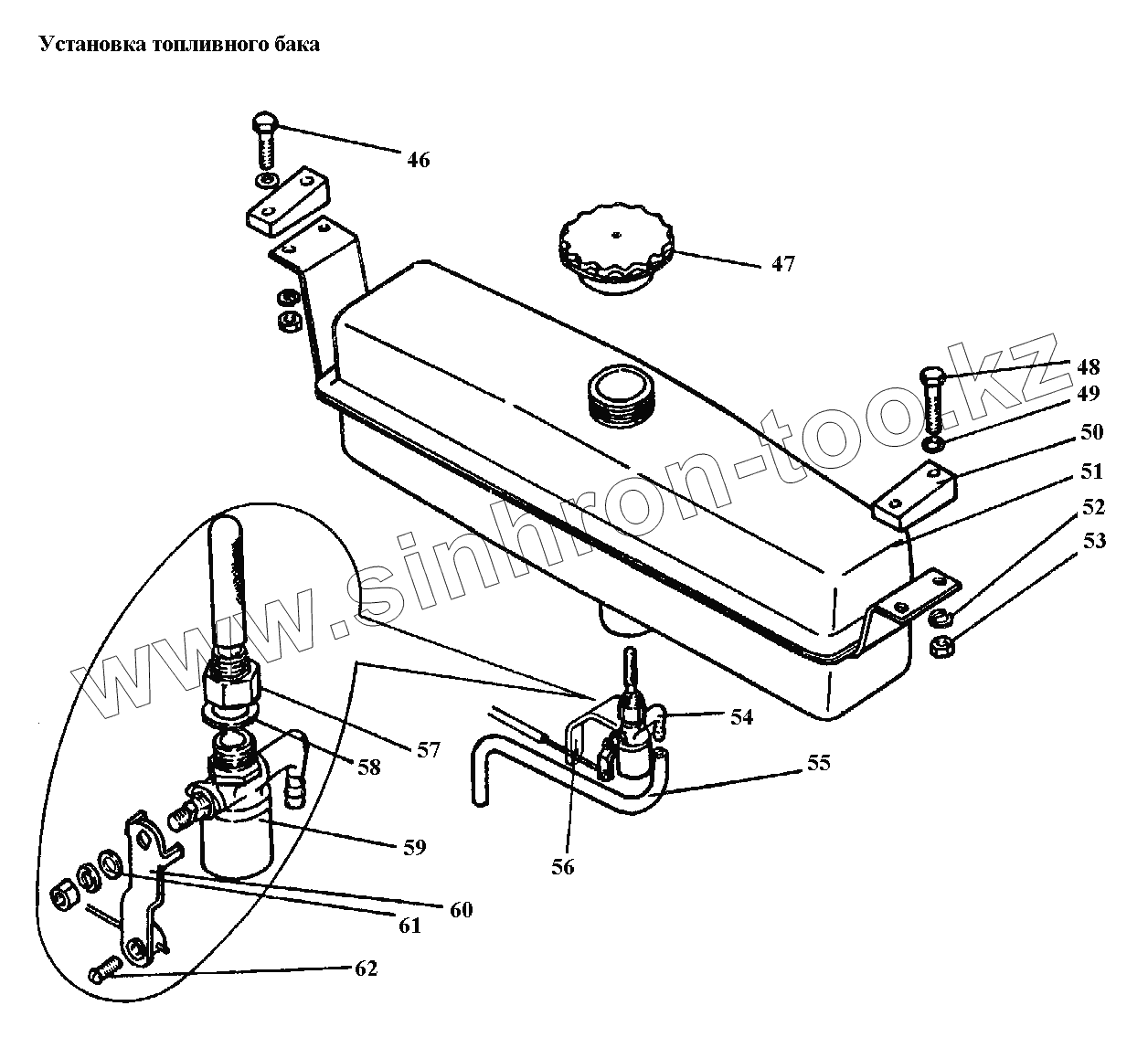 Каталог запасных частей к технике: АТЗ Т-4А, Т-4.02. Установка топливного бака