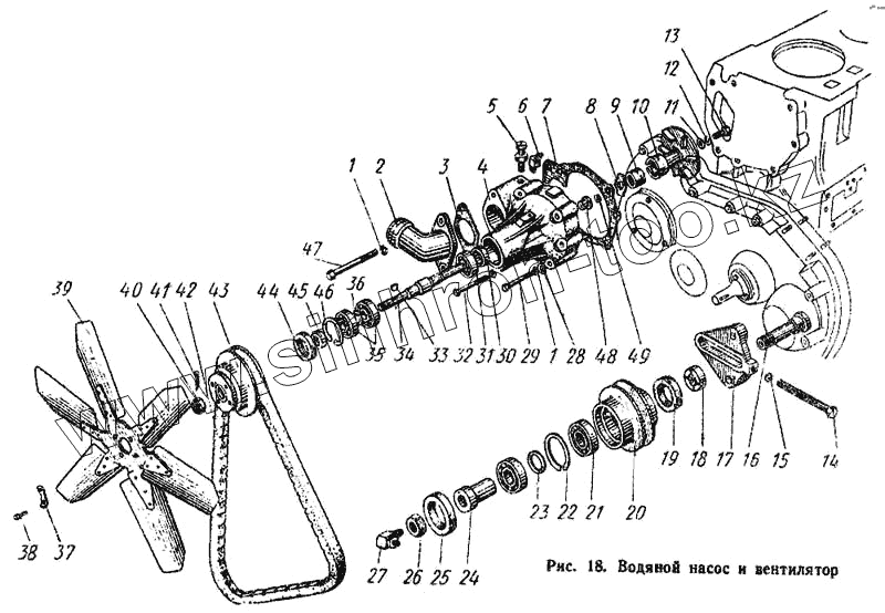 Каталог запасных частей к технике: АТЗ ТТ-4. Водяной насос и вентилятор