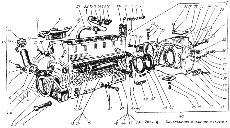 Каталог запасных частей к технике: АТЗ ТТ-4М. Блок-картер и картер маховика