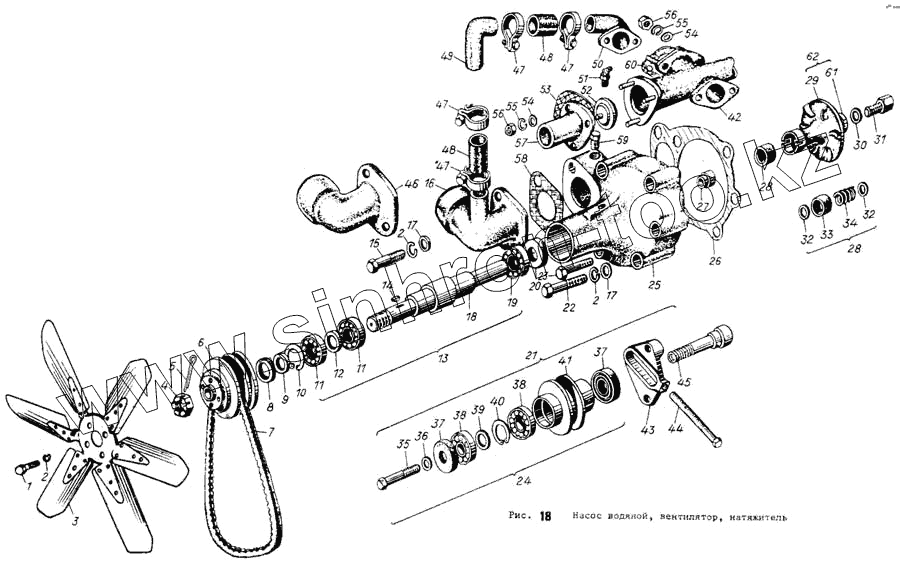 Каталог запасных частей к технике: АТЗ ТТ-4М. Насос водяной, вентилятор, натяжитель