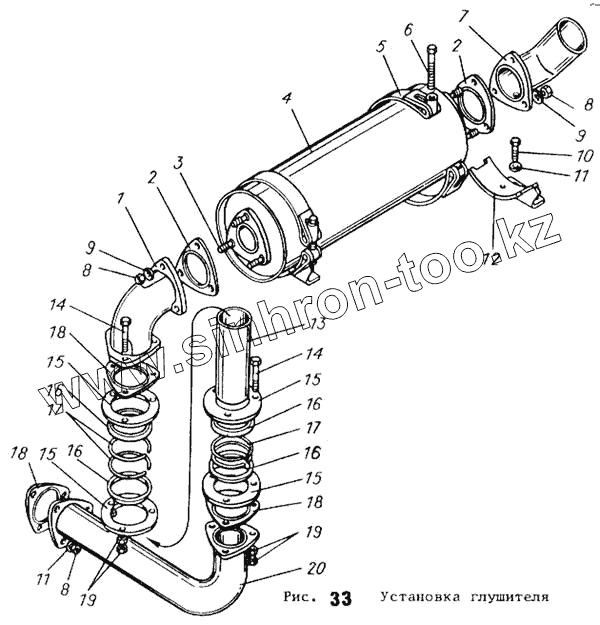 Каталог запасных частей к технике: АТЗ ТТ-4М. Установка глушителя