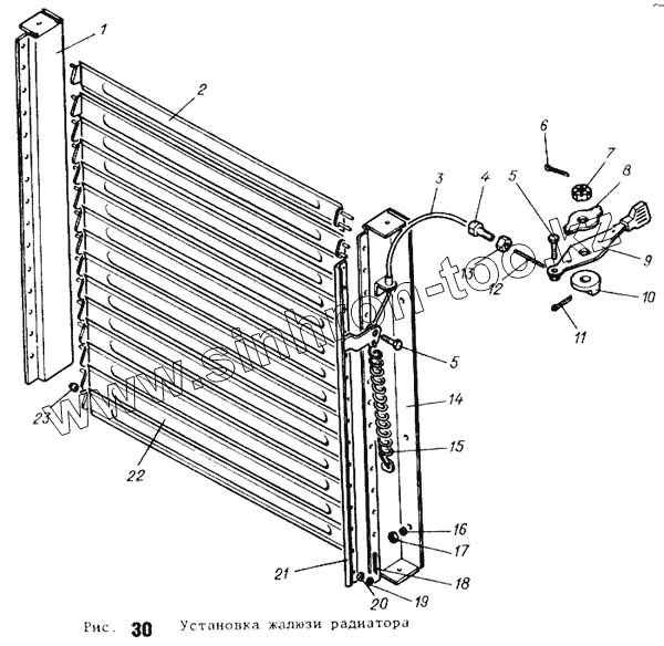 Каталог запасных частей к технике: АТЗ ТТ-4М. Установка жалюзи радиатора