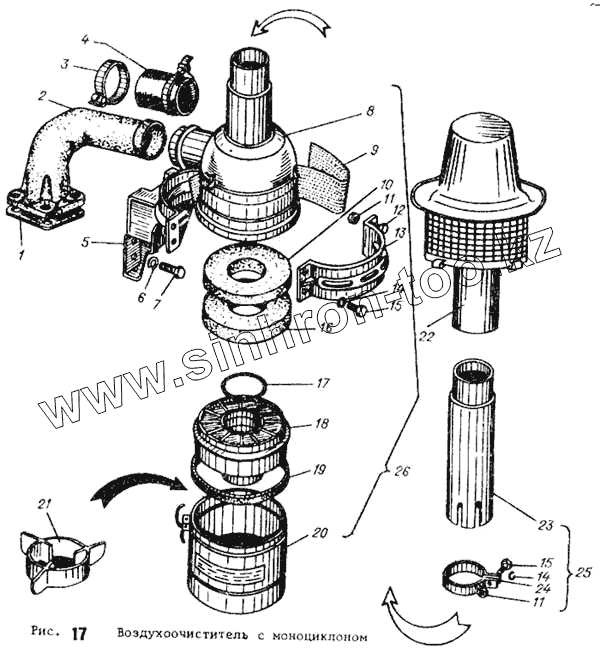 Каталог запасных частей к технике: АТЗ ТТ-4М. Воздухоочиститель с моноциклоном
