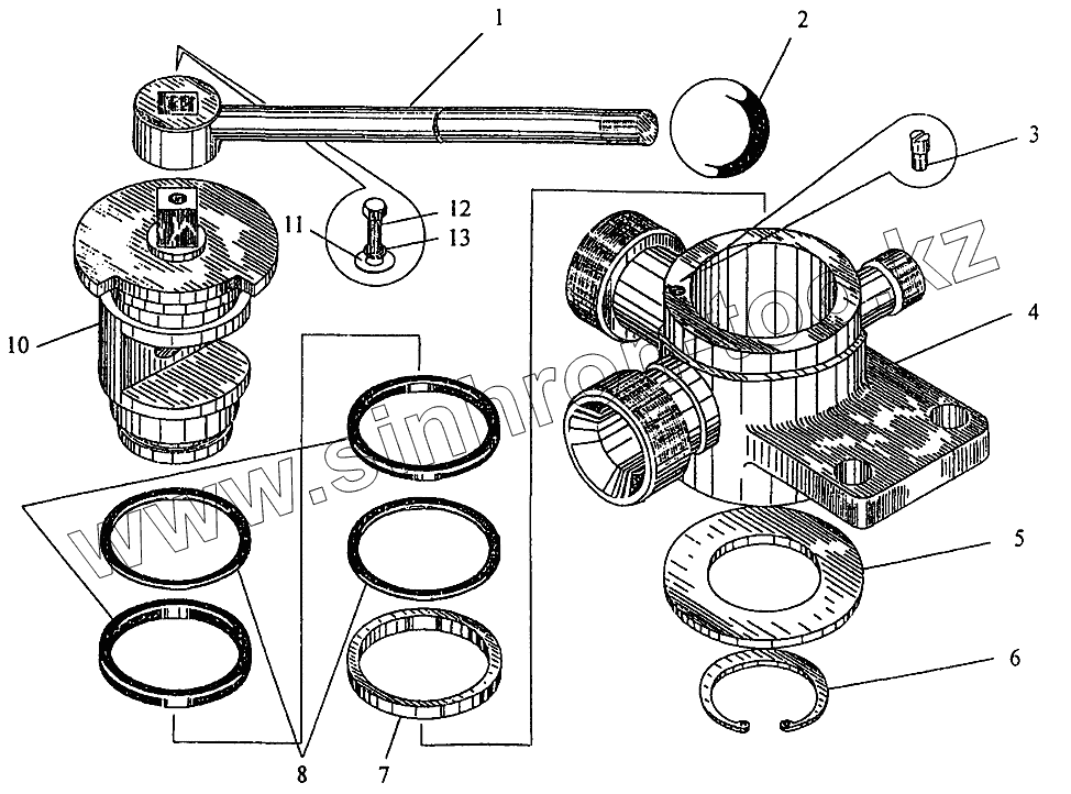 Каталог запасных частей к технике: Автокран КС-35714. Кран двухпозиционный У.034.00.000-11