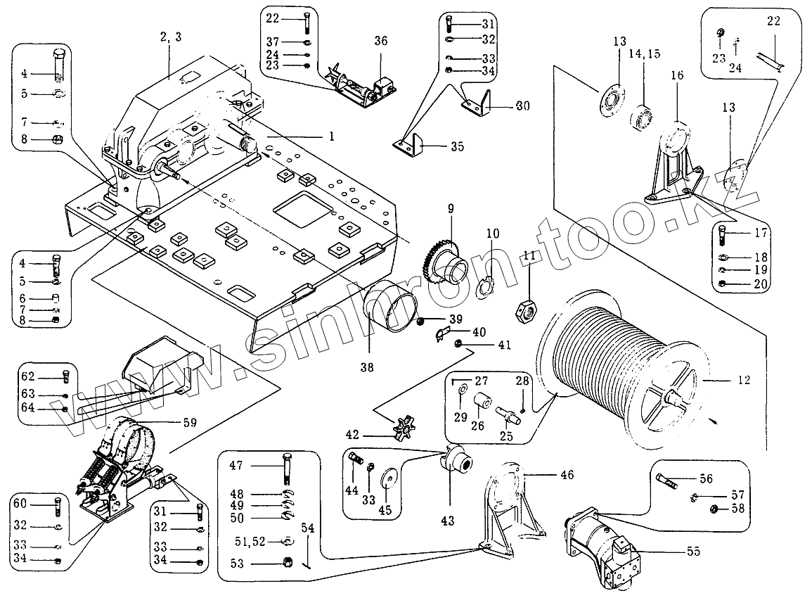 Каталог запасных частей к технике: Автокран КС-35714. Лебедка грузовая КС-35714.26.000