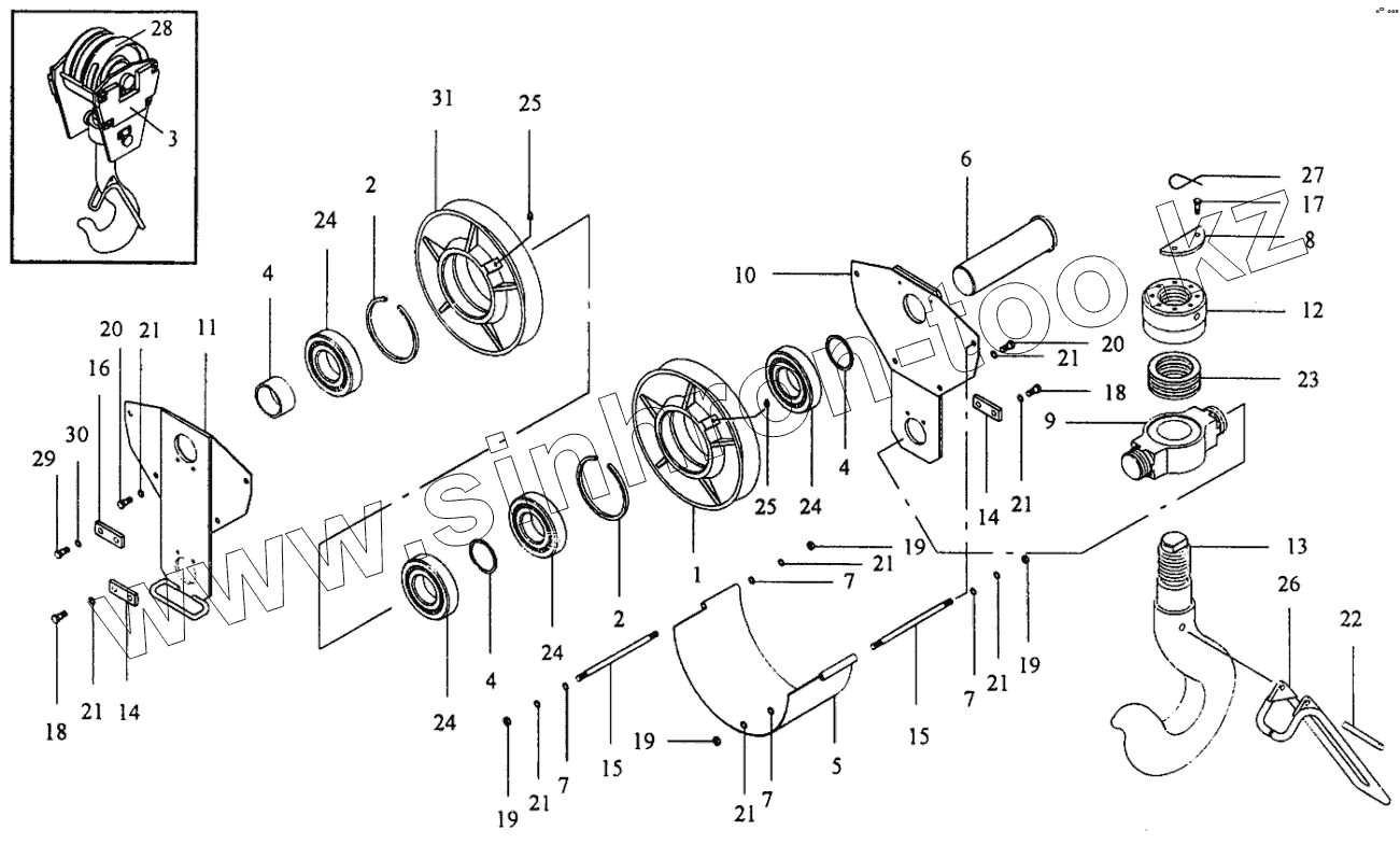 Каталог запасных частей к технике: Автокран КС-35714. Подвеска крюковая КС-3578.63.300