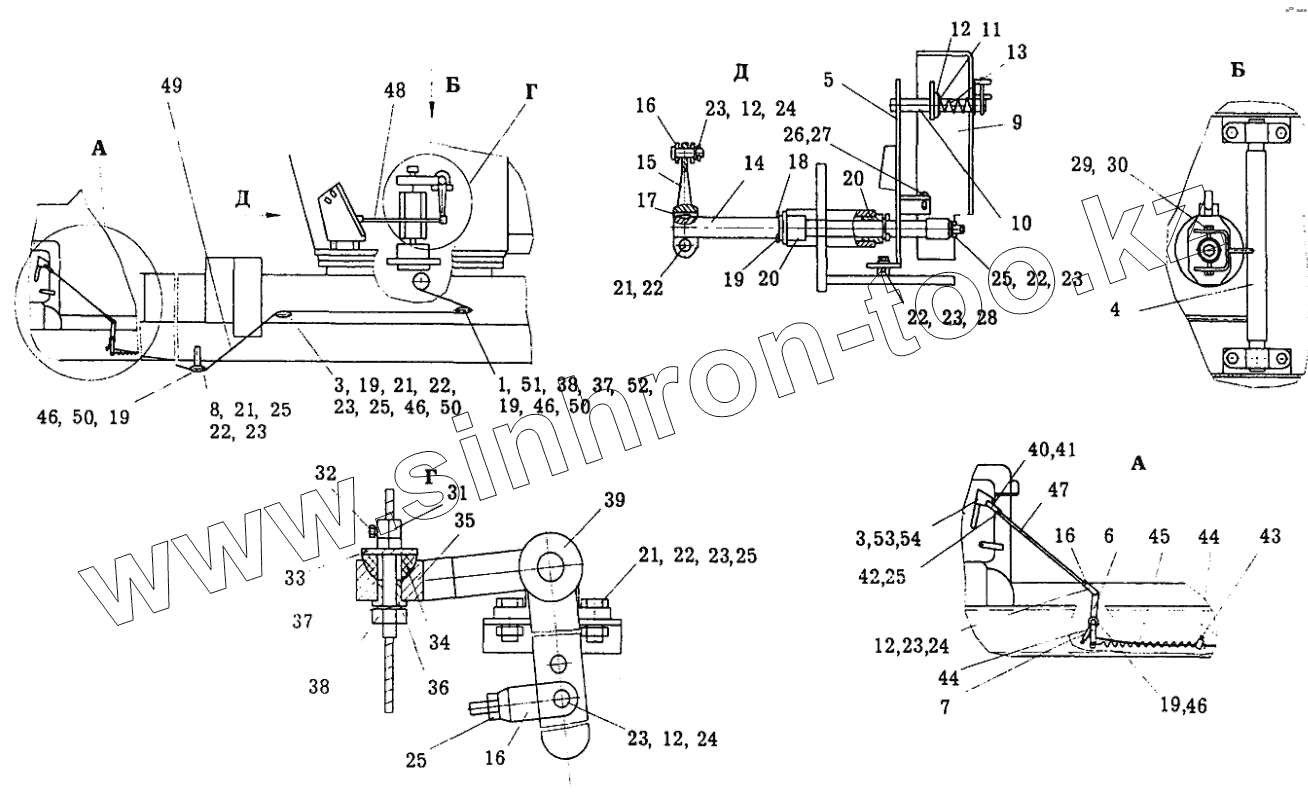 Каталог запасных частей к технике: Автокран КС-35714. Привод управления двигателем КС-35714.72.000