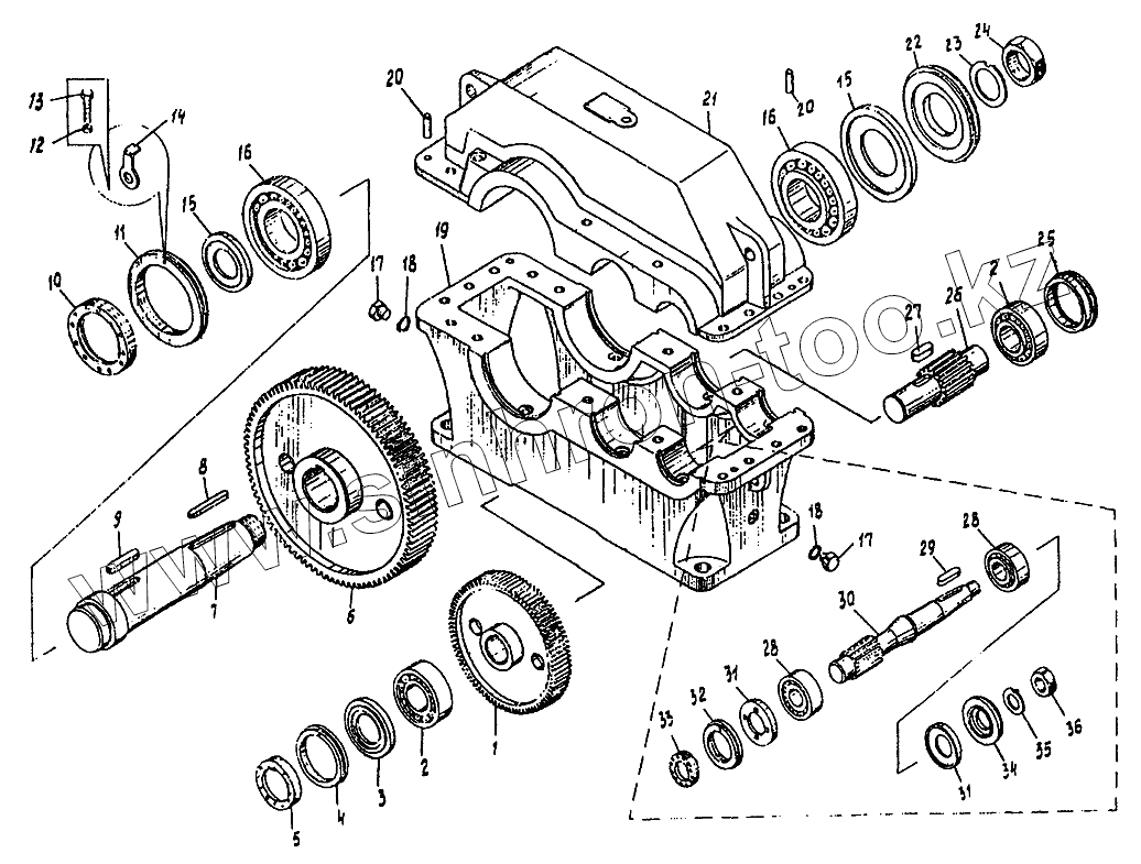 Каталог запасных частей к технике: Автокран КС-35714. Редуктор 1Ц2У-250-31,5-11