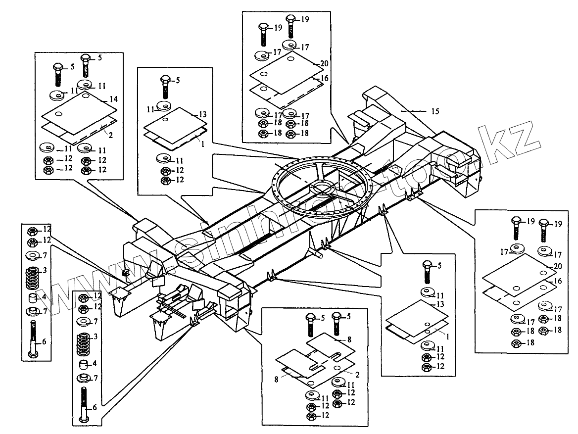 Каталог запасных частей к технике: Автокран КС-35714. Установка нижней рамы КС-35714.30.000