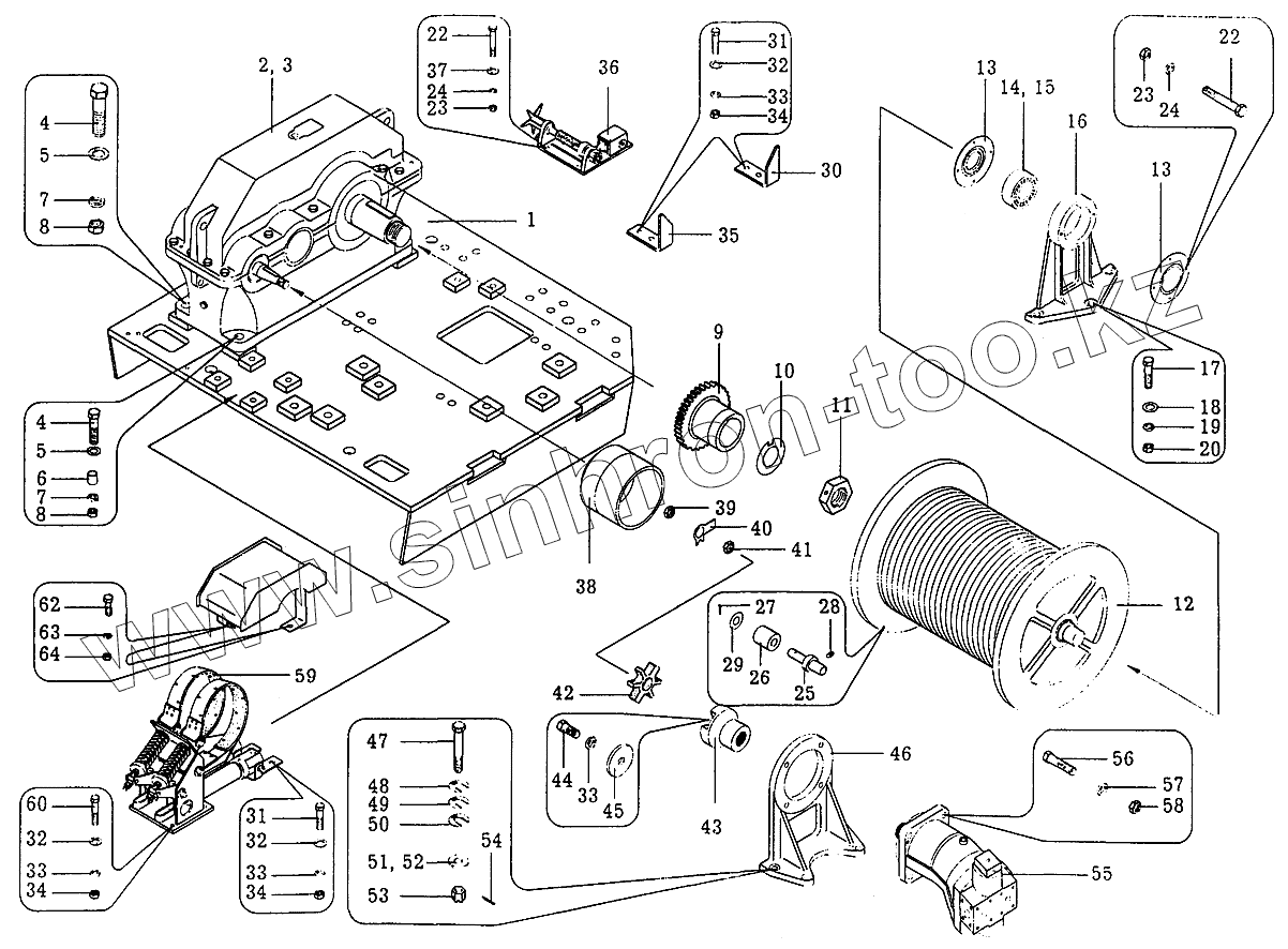 Каталог запасных частей к технике: Автокран КС-35715. Лебедка грузовая КС-35714.26.000