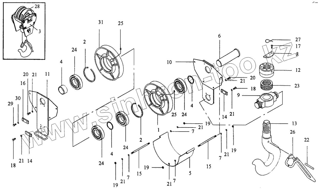 Каталог запасных частей к технике: Автокран КС-35715. Подвеска крюковая КС-3578.63.300