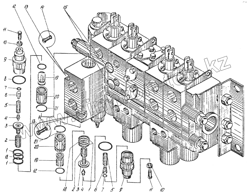 Каталог запасных частей к технике: Автокран КС-3571. Блок перепускных клапанов 64.600