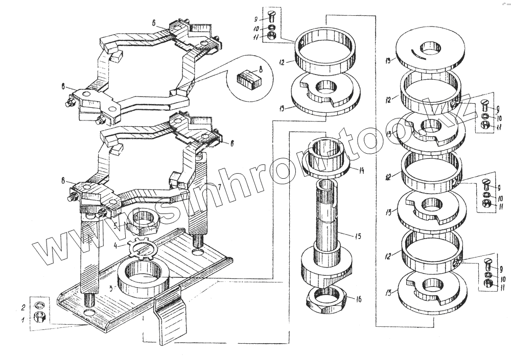 Каталог запасных частей к технике: Автокран КС-3571. Кольцевой токосъемник КС-3562А.51.200
