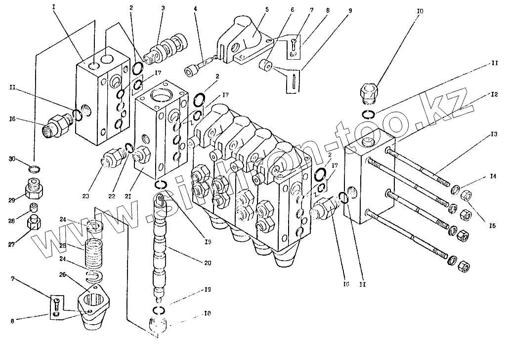 Каталог запасных частей к технике: Автокран КС-3574. Гидрораспределитель УЗ.19.00.000