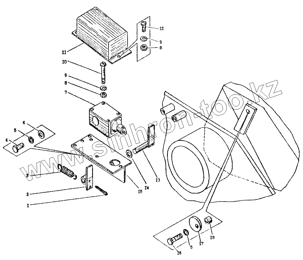 Каталог запасных частей к технике: Автокран КС-3574. Ограничитель подъема стрелы КС-3574.80.500