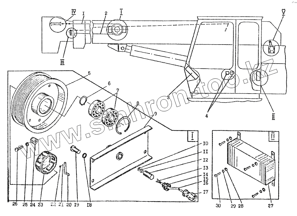 Каталог запасных частей к технике: Автокран КС-3574. Установка ограничителя грузоподъемности КС-3574.67.000