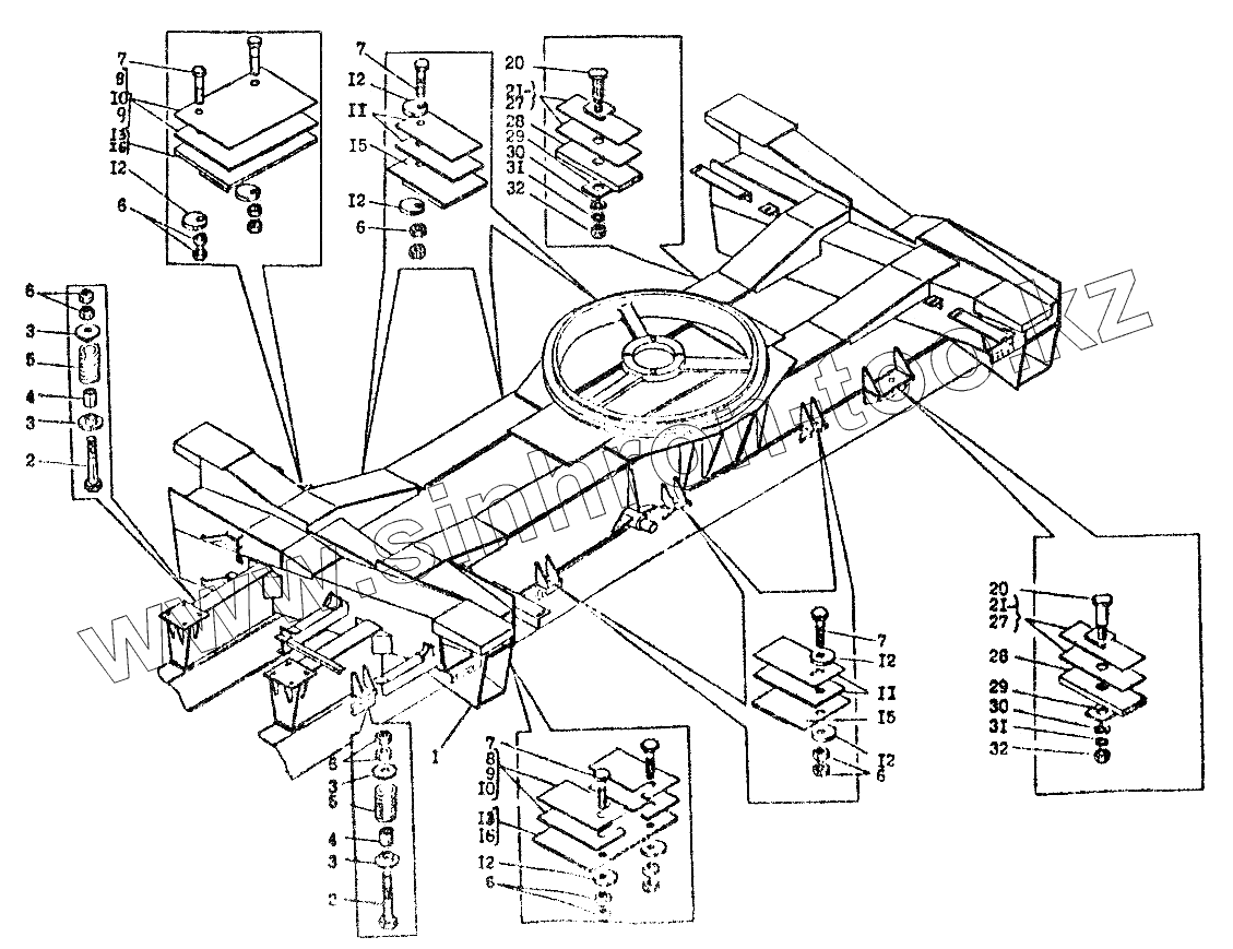 Каталог запасных частей к технике: Автокран КС-3574. Установка рамы КС-3574.30.000-01