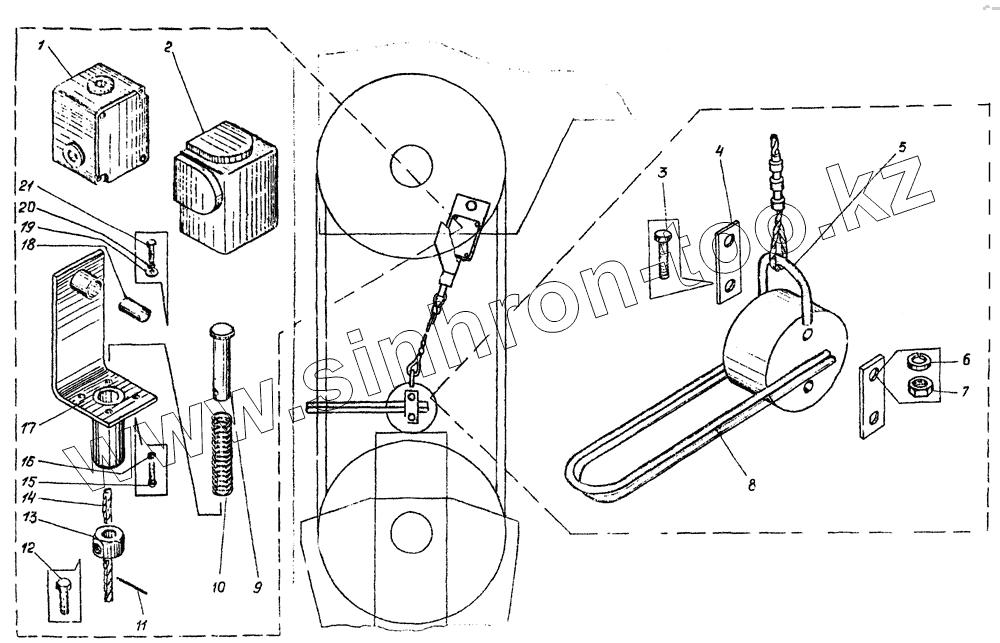 Каталог запасных частей к технике: Автокран КС-3576. Ограничитель подъема крюка КС-3576.80.400