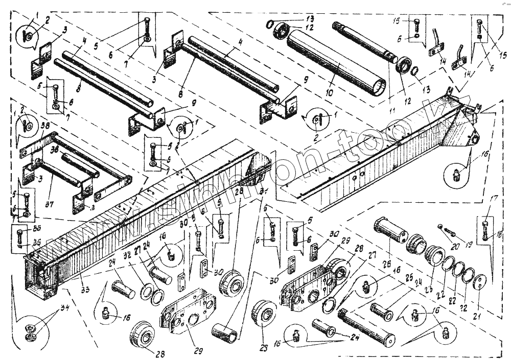 Каталог запасных частей к технике: Автокран КС-3576. Стрела телескопическая (основание стрелы) КС-3576.63.100