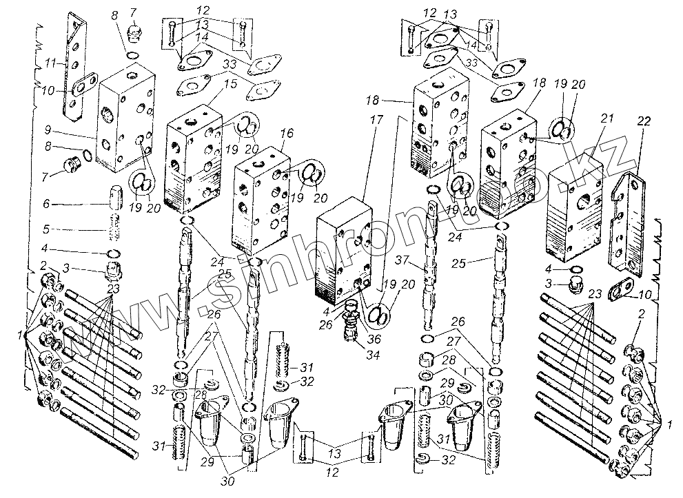 Каталог запасных частей к технике: Автокран КС-3577. Гидрораспределитель У.063.00.000-3