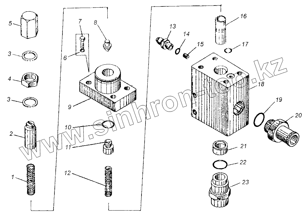 Каталог запасных частей к технике: Автокран КС-3577. Клапан предохранительный У.067.00.000