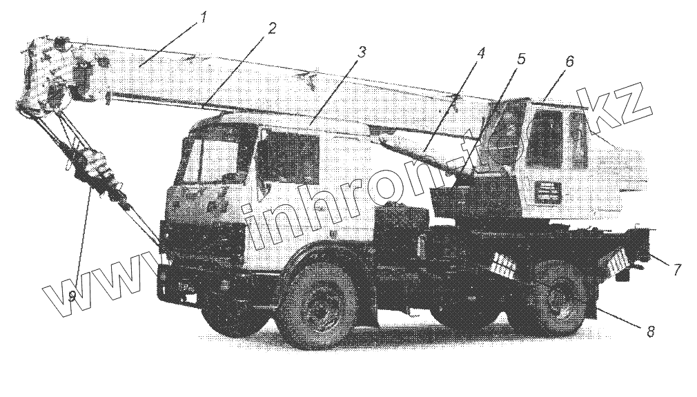 Каталог запасных частей к технике: Автокран КС-3577. Общий вид крана КС-3577-3