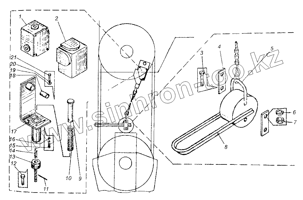 Каталог запасных частей к технике: Автокран КС-3577. Ограничитель подъема крюка КС-3577.80.400