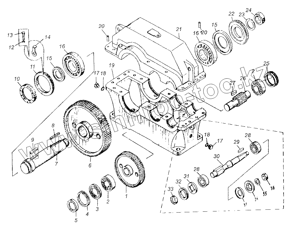 Каталог запасных частей к технике: Автокран КС-3577. Редуктор Ц2У-250-31,5-11