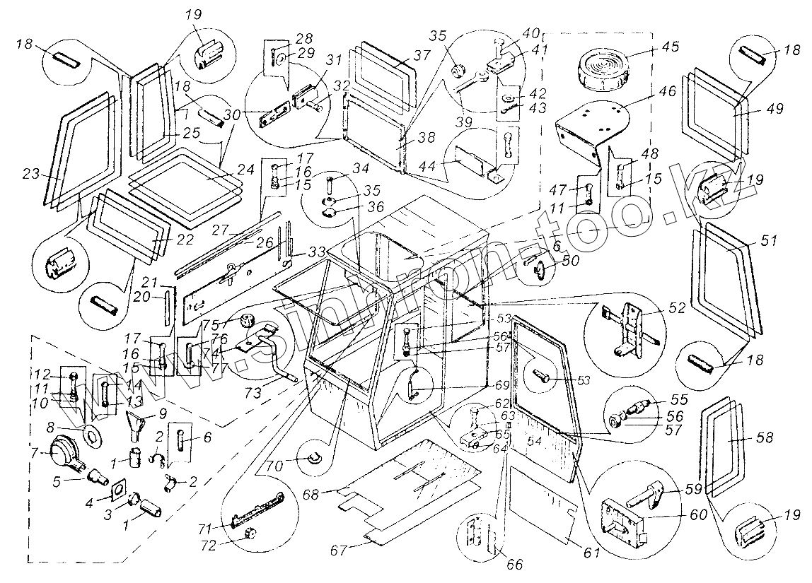 Каталог запасных частей к технике: Автокран КС-3577. Установка кабины КС-3577.52.000