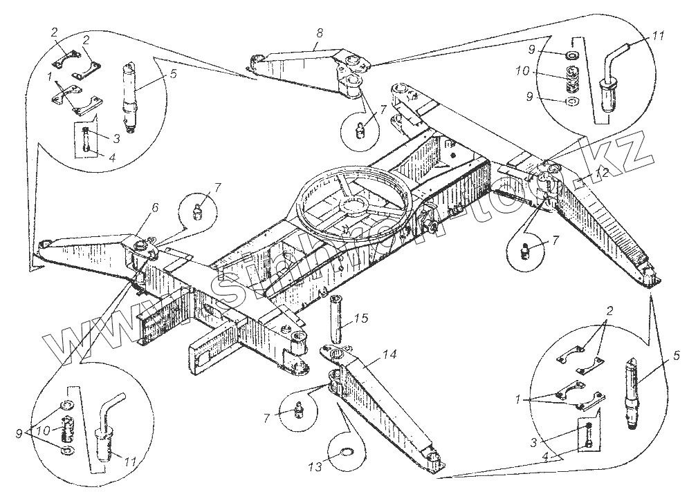 Каталог запасных частей к технике: Автокран КС-3577. Установка выносных опор КС-3577.31.000