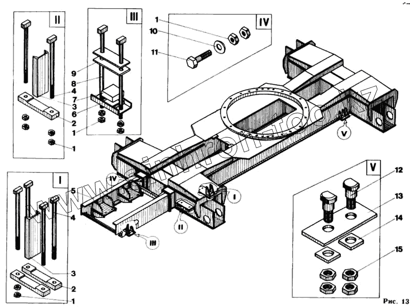 Каталог запасных частей к технике: Автокран КС-4562. Установка рамы