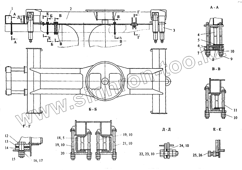 Каталог запасных частей к технике: Автокран КС-45717К-1. Установка опорной рамы с меанизмами