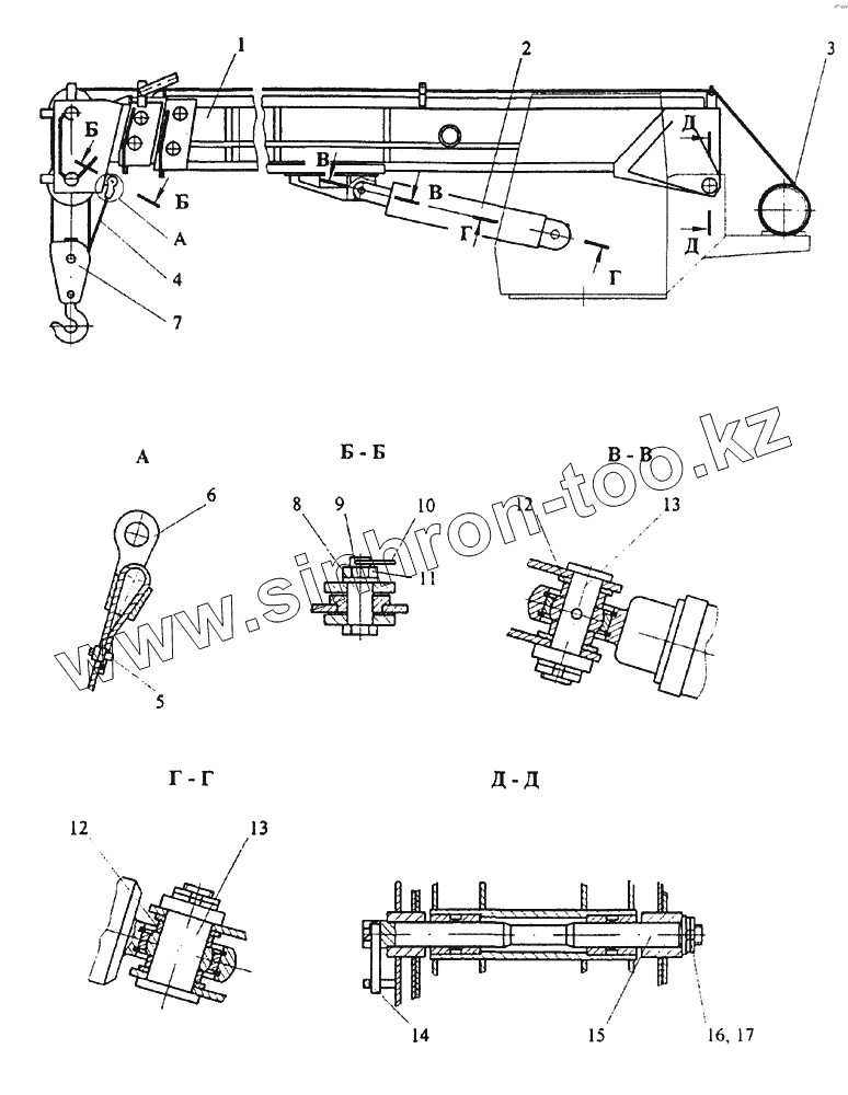 Каталог запасных частей к технике: Автокран КС-45717К-1. Установка телескопической стрелы