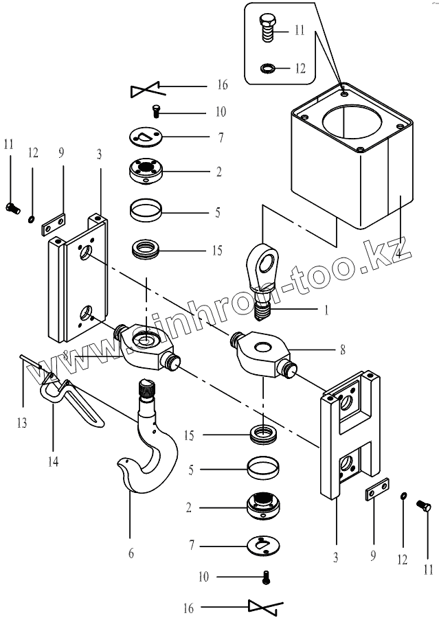 Каталог запасных частей к технике: Автокран КС-45717К-1 (вариант). Подвеска крюковая вспомогательная
