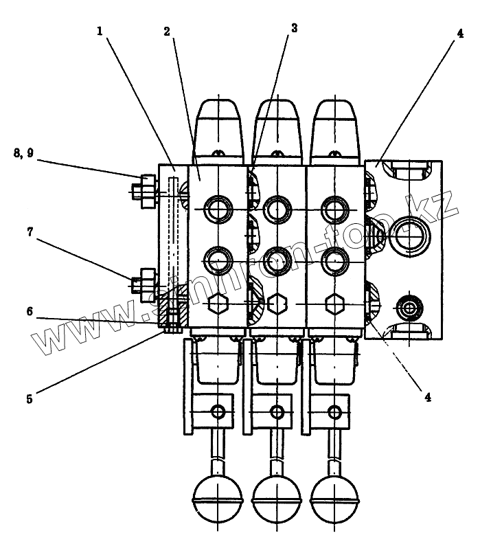Каталог запасных частей к технике: Автокран КС-6973А. Гидрораспределитель УЗ.30.00.000-01