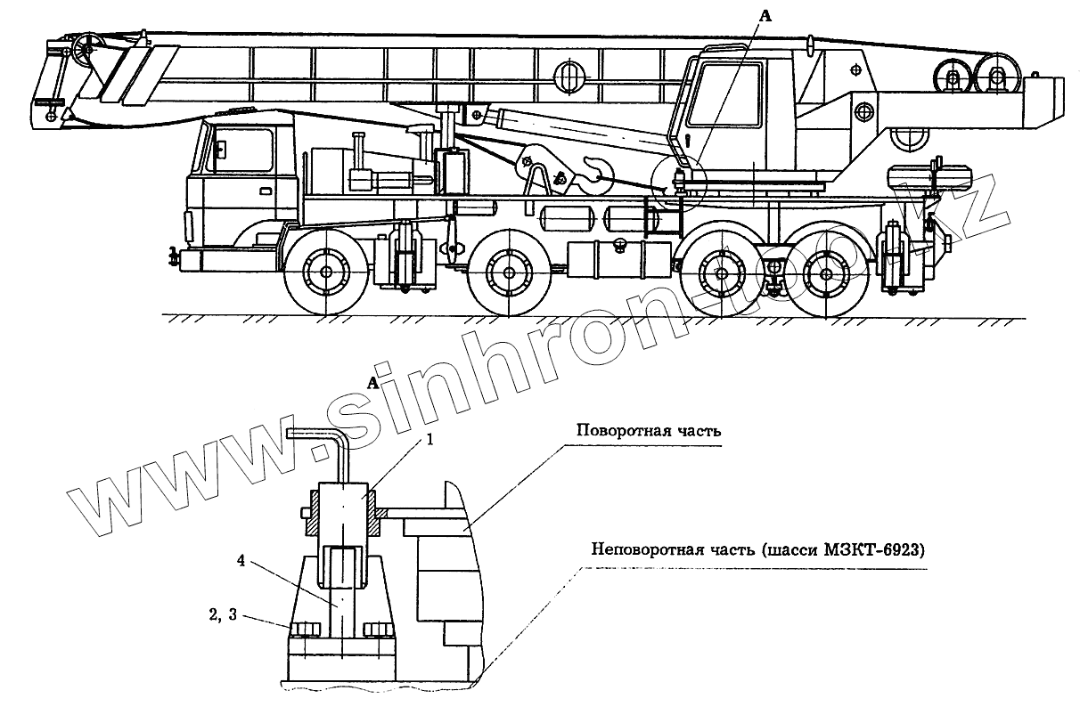 Каталог запасных частей к технике: Автокран КС-6973А. Установка фиксатора KC-6973A.00.500
