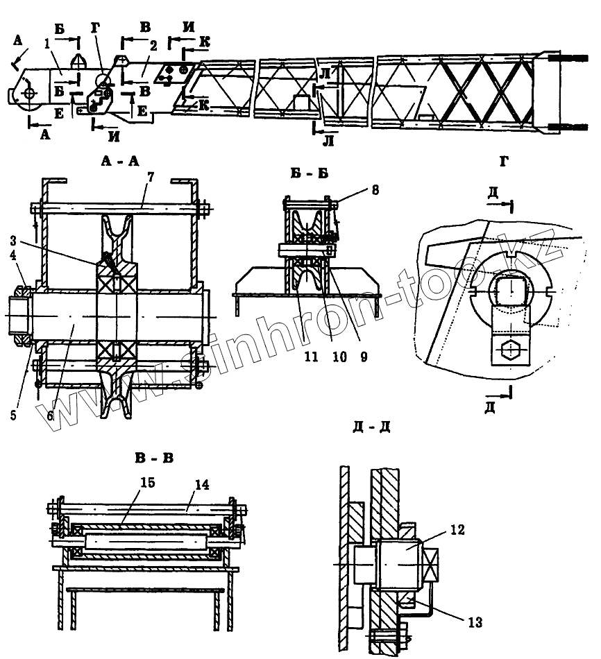 Каталог запасных частей к технике: Автокран КС-6973А. Установка гуська KC-6973A.62.000