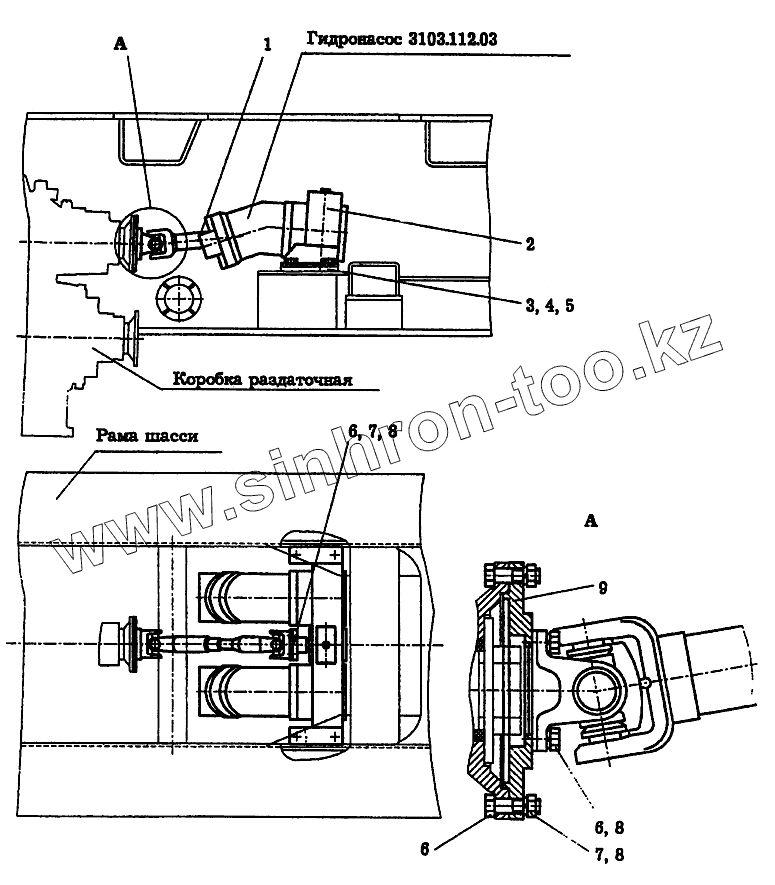 Каталог запасных частей к технике: Автокран КС-6973А. Установка привода насосов KC-6973A.14.000