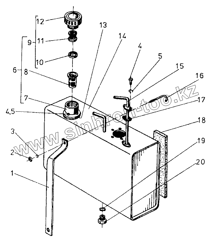 Каталог запасных частей к технике: Балканкар Рекорд ДВ-1621. Топливный бак