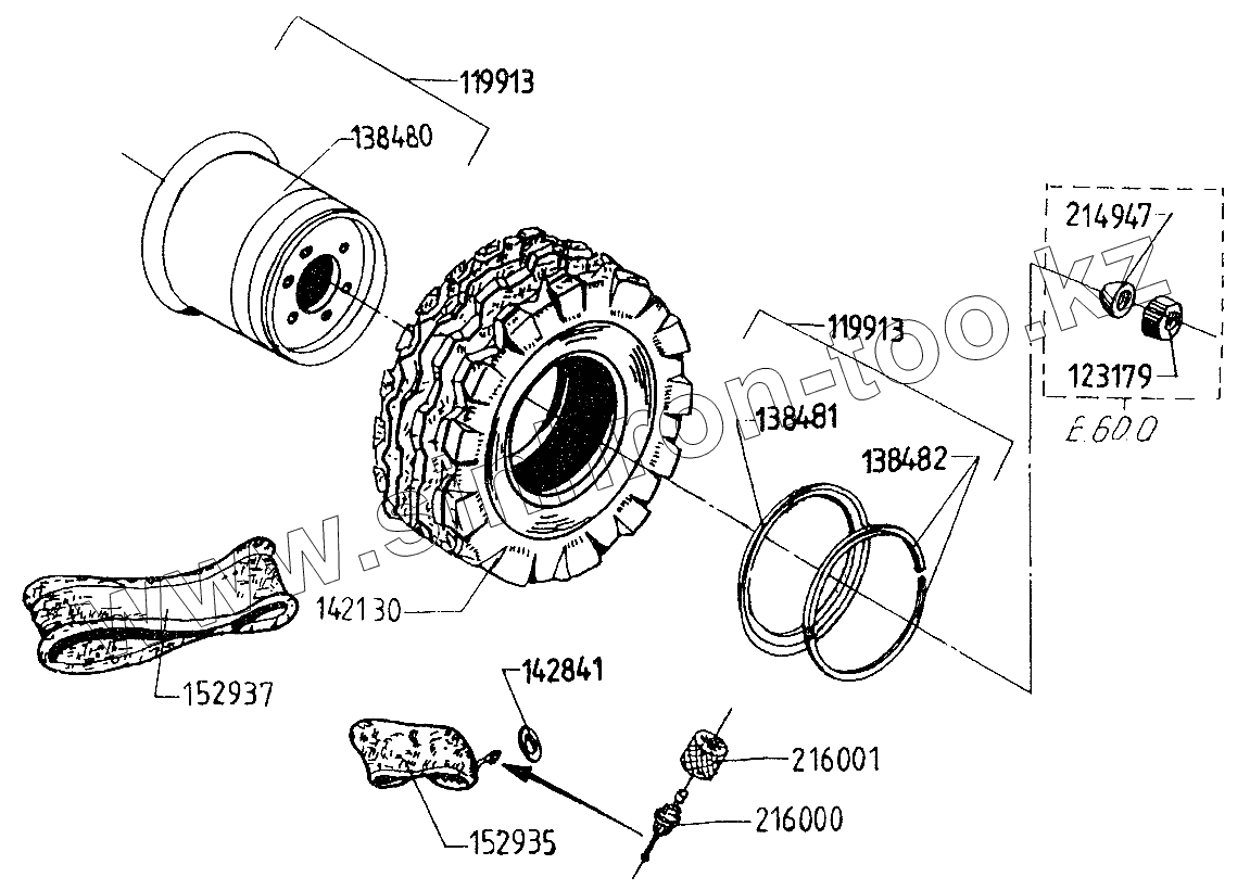 Каталог запасных частей к технике: Балканкар Рекорд EB-695. Пневматическое управляемое колесо в сборе