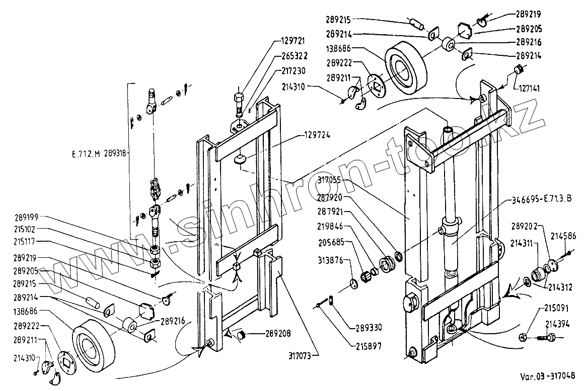 Каталог запасных частей к технике: Балканкар Рекорд EB-695. Рамы и цилиндр - монтаж
