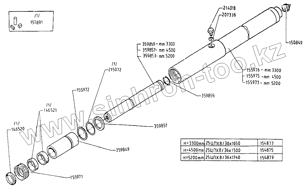 | 5 | 2846.00.00-01 | Плунжерный гидравлический цилиндр 25ЦПХ8/36х1650 | |