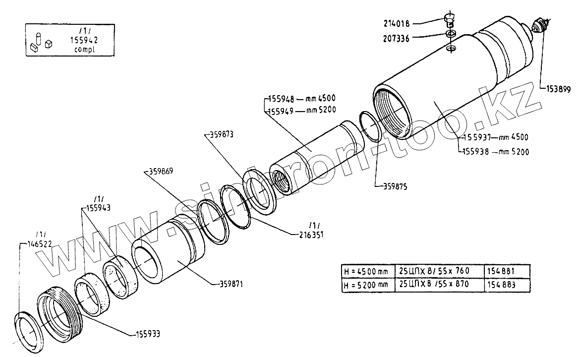 | 4 | 2850.00.00-02 | Плунжерный гидравлически цилиндр 25ЦПХ8/55х870 | |