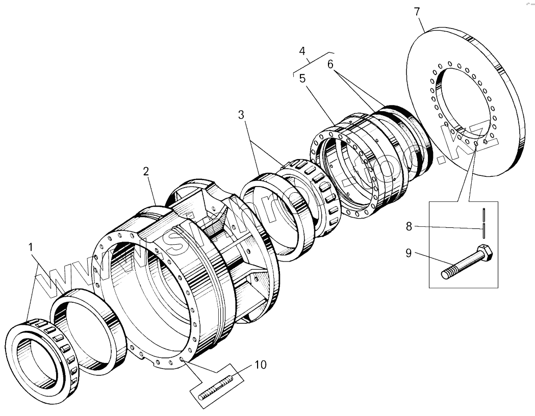 Каталог запасных частей к технике: БелАЗ 7823, 78231. Cтупица колеса (7823-3104013-10);Wheel hub